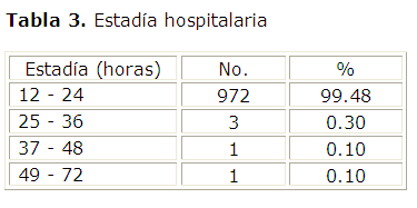 El 99.48 % de los pacientes intervenidos por este sistema fue egresado antes de las 36 horas de operado, con iguales resultados de otros artículos revisados (Tabla 3).