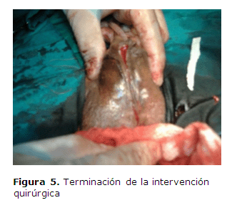 Para la realización de la misma se procedió a medir la estenosis uretral (Figura 1), luego se realizó la abertura quirúrgica (Figura 2), posteriormente se injertó mucosa prepucial (Figuras 3); una vez terminado el injerto se cerró la abertura quirúrgica (Figura 4) y se procedió a terminar la operación (Figura 5). Finalmente y, luego del posoperatorio, se procedió a comprobar la micción (Figura 6).